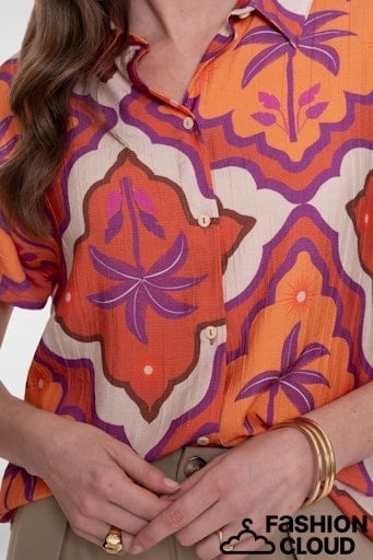Geisha Geisha Blouse 63247-20 - 718 Ecru/Mango/Purple